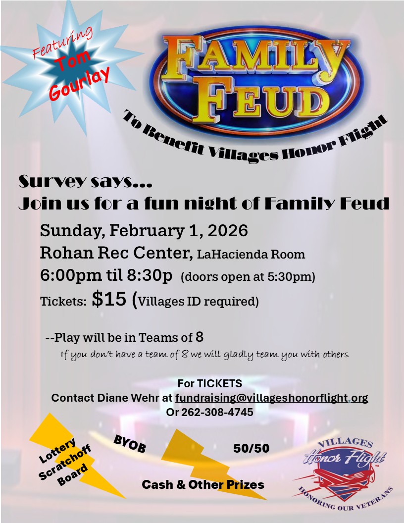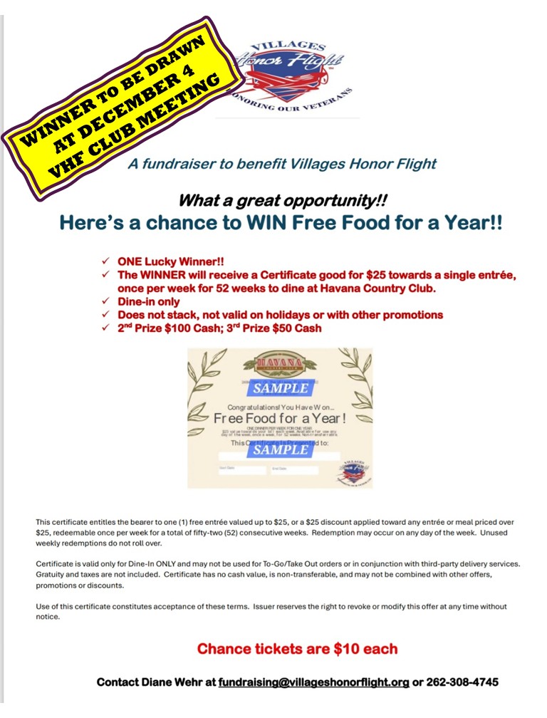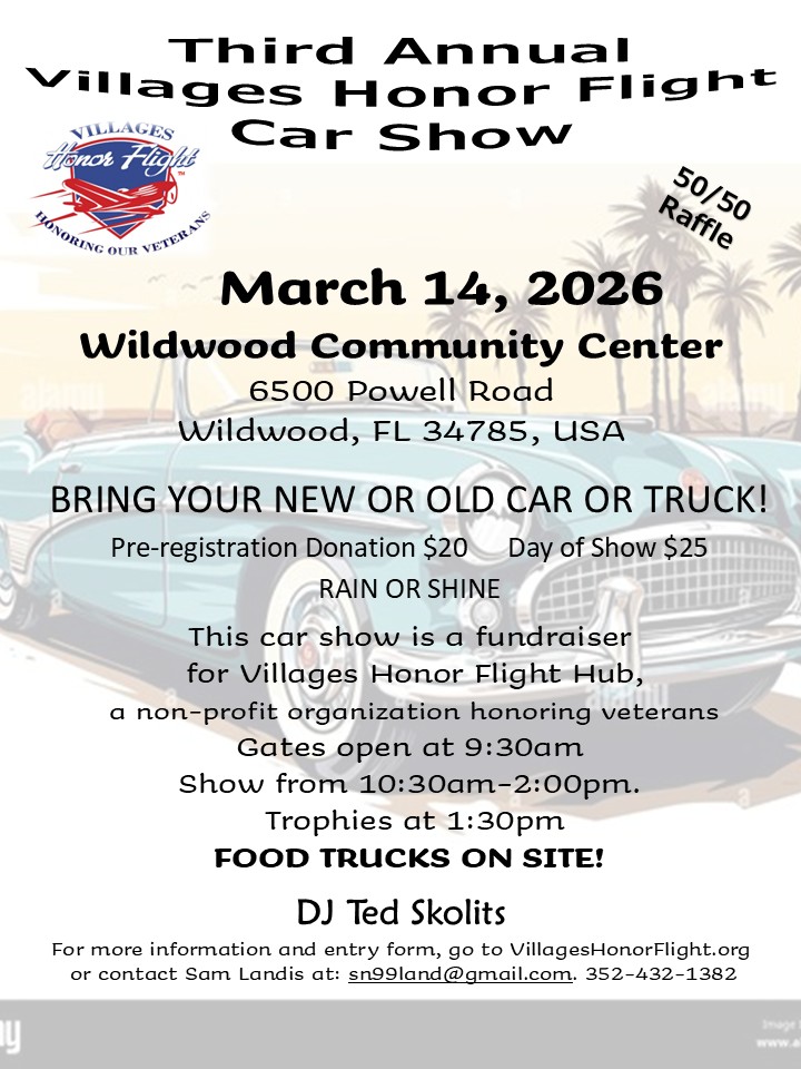 | Villages Honor Flight, Inc. is a 501(c)(3) Charity. All donations are tax deductible. |
