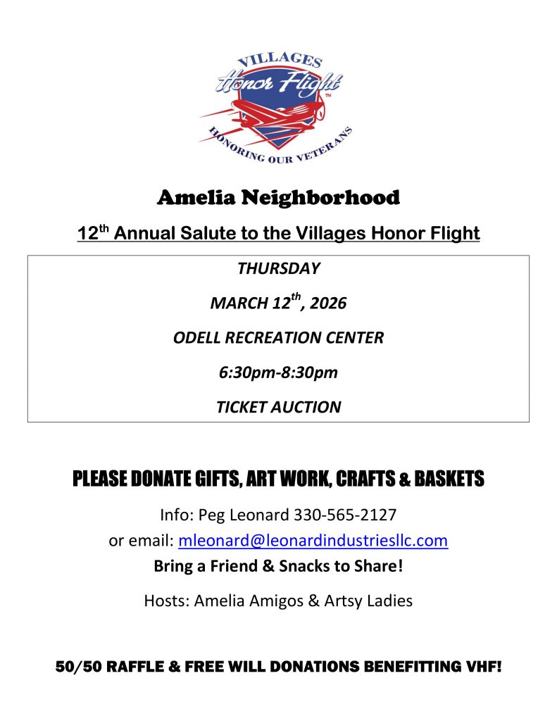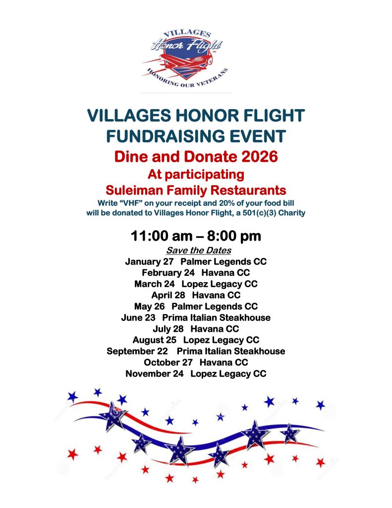 | Villages Honor Flight, Inc. is a 501(c)(3) Charity. All donations are tax deductible. |